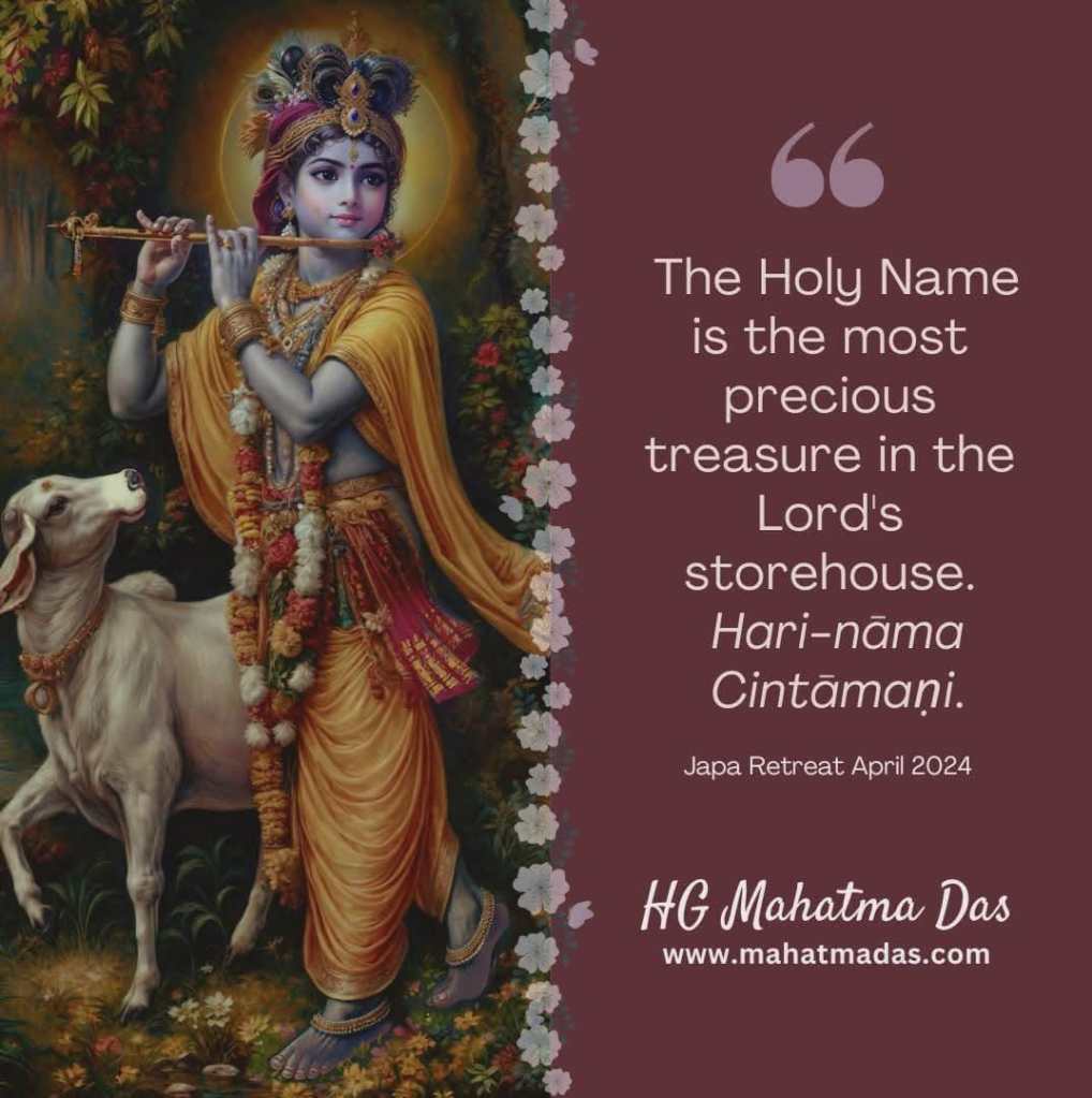 We chant the Holy Name with the prayer, ”O Radhe, O Krsna, please engage me in Your service.” Krsna will ask, “What can you give up to attain My service?” Are we ready to completely surrender like the gopis, giving up even our most precious wealth (like shyness and chastity)? Deep points to ponder!!!